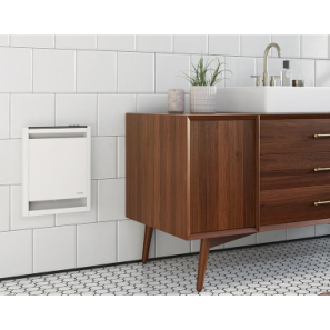 L’aéroconvecteur Orléans permet une installation encastrée ou en surface, puisque le manchon est inclus. De plus, il s’installe au mur à un minimum de 6 pouces du plancher, ce qui favorise une diffusion optimale de la chaleur.