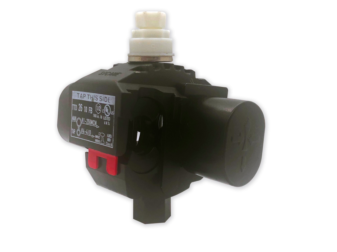 Compatible avec des conducteurs principaux de 1 AWG à 250 kcmil et des conducteurs de dérivation de 4 AWG à 4/0 AWG, ce connecteur s’adapte à plusieurs configurations. Il est conçu pour supporter une intensité allant jusqu’à 405 A (cuivre) et 315 A (aluminium). Son système de serrage à tête fusible assure un couple précis (160 lb-po) pour une installation fiable.