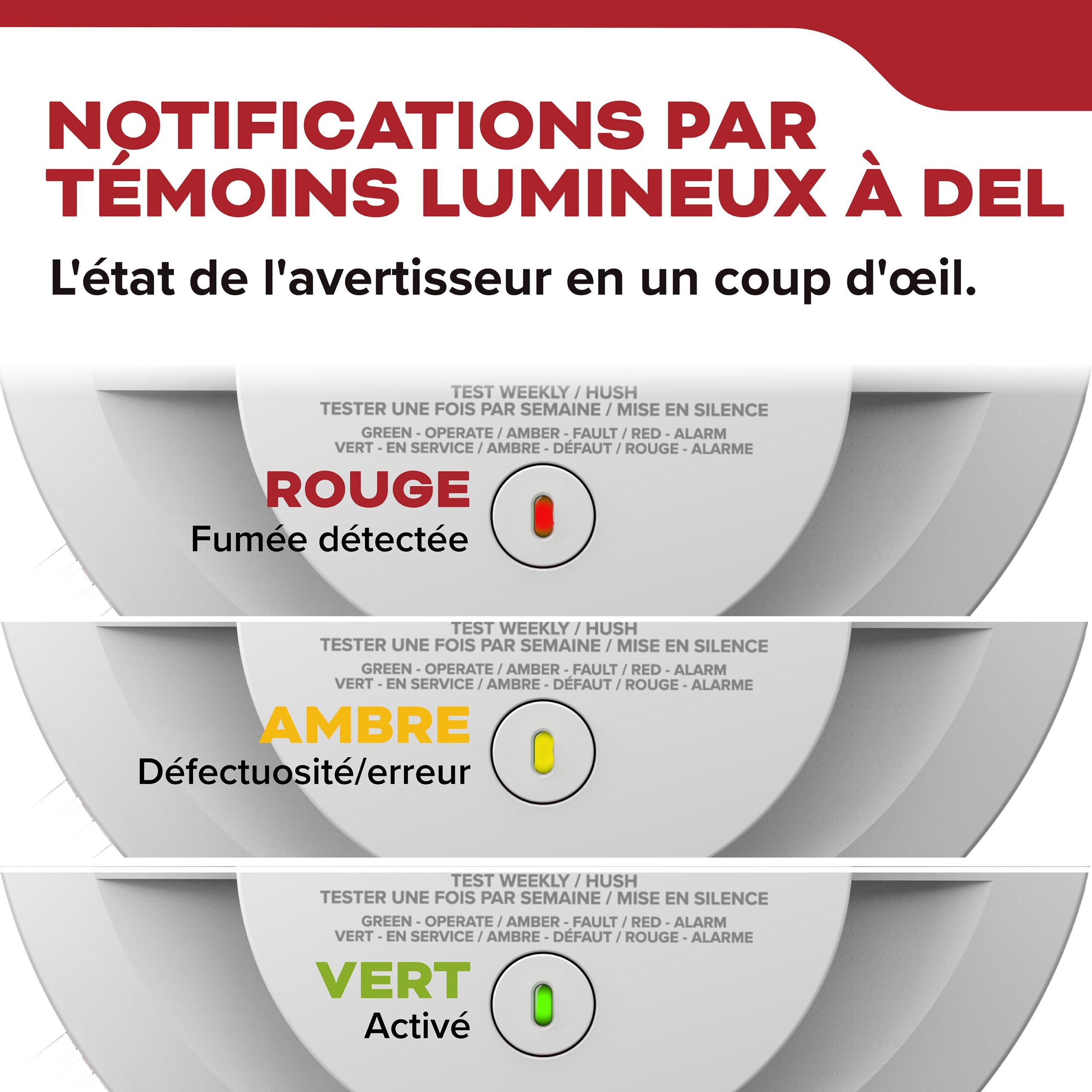 Grâce à la fonction d’interconnexion, lorsque l’un des avertisseurs se déclenche, tous les autres retentissent simultanément. Par conséquent, chaque occupant est averti rapidement, peu importe l’endroit où il se trouve dans la résidence.
