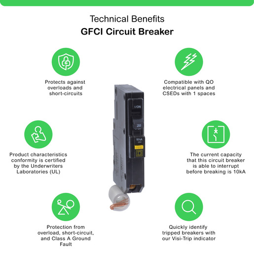 UGS : QO120GFI Catégories : Disjoncteur (breaker), Distribution et contrôle Marque : Schneider (Square D)