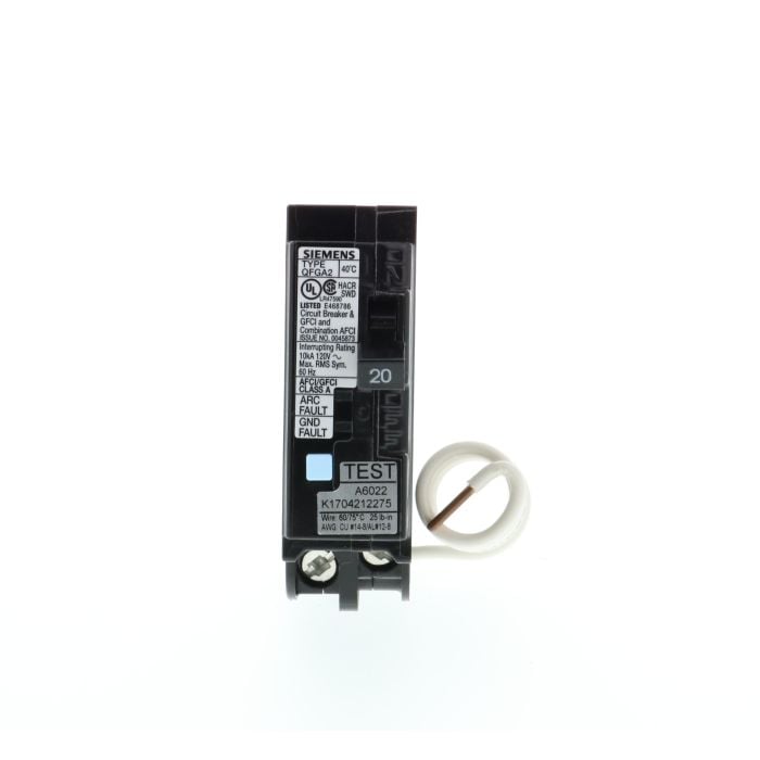 - Le disjoncteur à double fonction combine une protection AFCI de type mixte et une protection GFCI de classe A de 5 mA en un seul appareil.