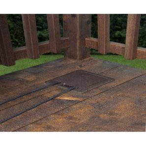 Le modèle DOCK320Z est conçu pour les terrasses surélevées en bois ou en matériaux composites. Il s’installe directement dans la surface du patio et comprend une boîte électrique avec sorties filetées de ½ pouce pour faciliter le raccordement du conduit.
